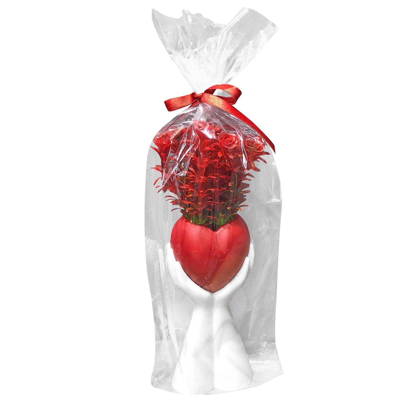 Διακοσμητική Γλάστρα σε Παλάμη με Κόκκινα Άνθη Κόκκινη Καρδιά 35x10cm Homie 423049
