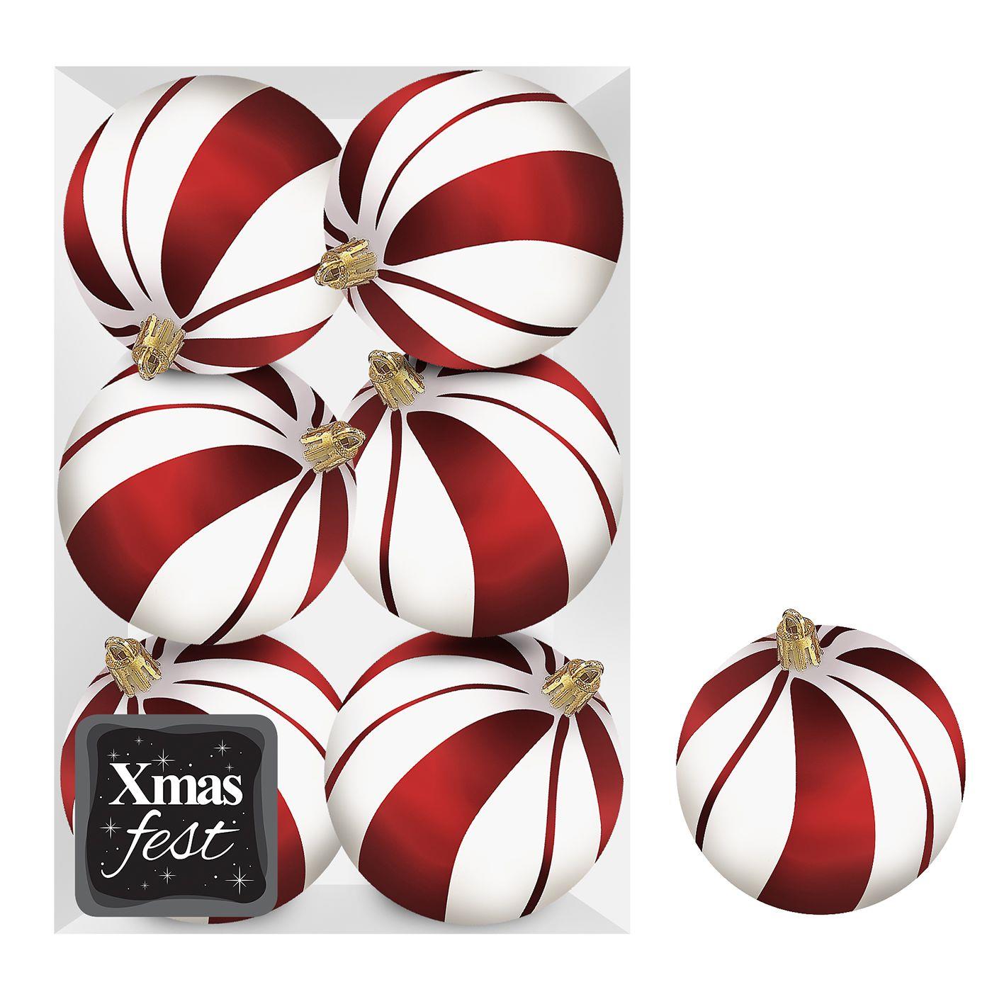 Μπάλες Λευκές με Κόκκινες Ρίγες πακ=6τεμ φ8 ø8cm Xmasfest 1133596