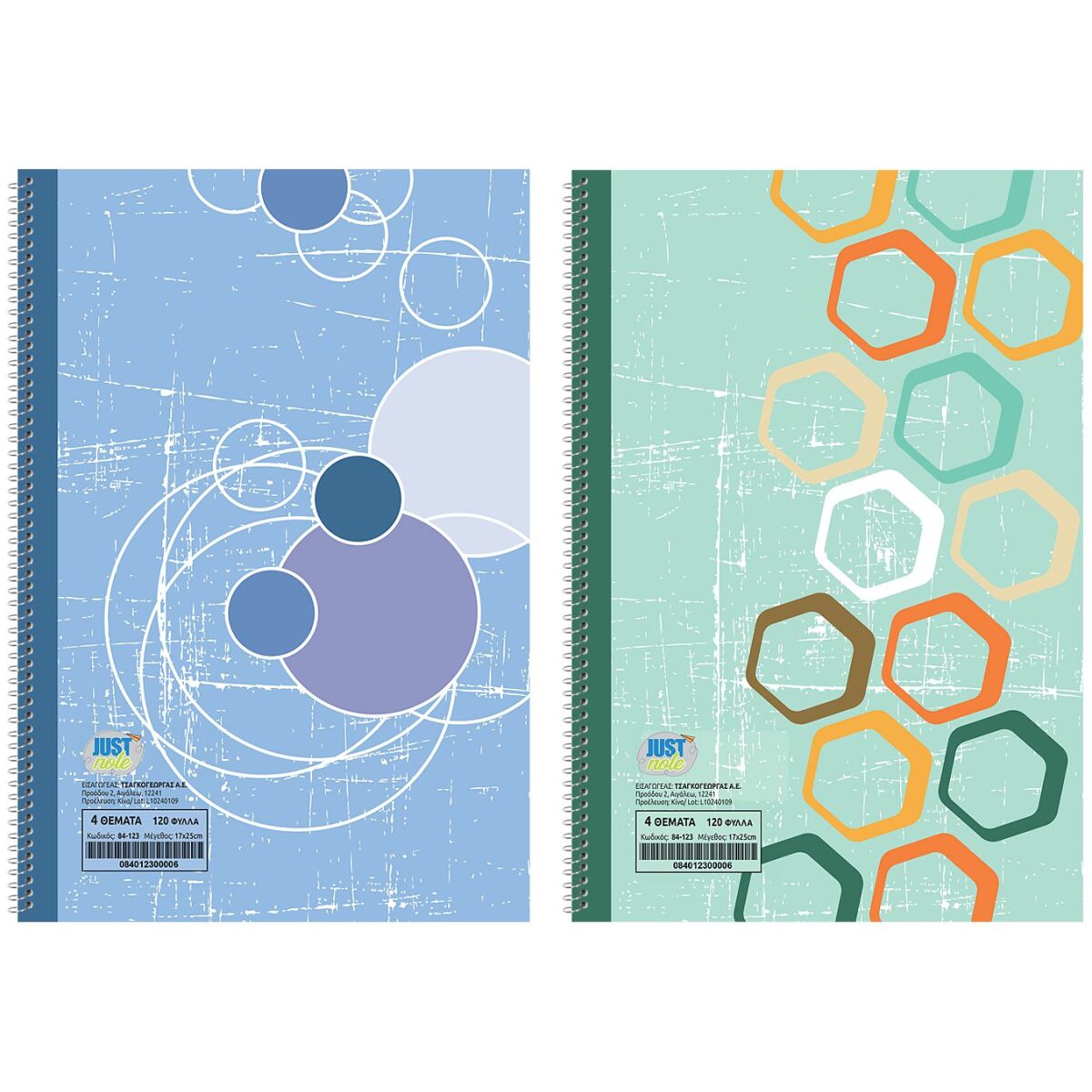 Τετράδια Σπιράλ 4θεματων ρρ Πλαστ. Εξώφυλλο 17x25cm JustNote 104143